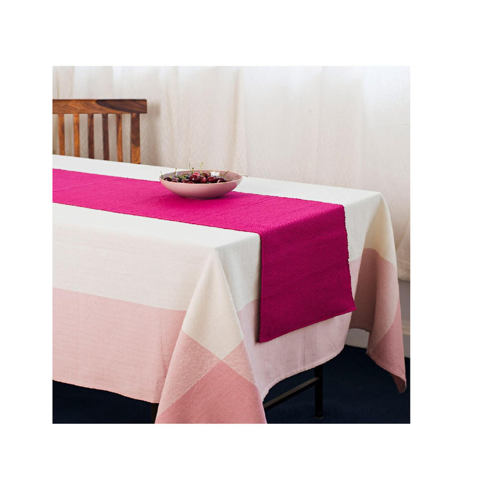 Custom Solid Pink Color Ribbed Waterproof Table Runner For Home Dinning Even Round Square Table Cloth 100% Cotton Sustainable