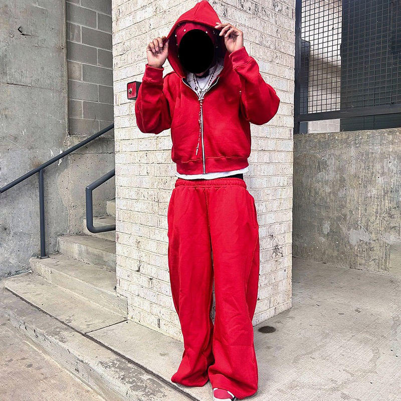 Custom Solid Streetwear Men 400gsm Heavyweight Boxy Zip up Hoodie and Pants Set Acid Washed Sweatsuit Men Tracksuit