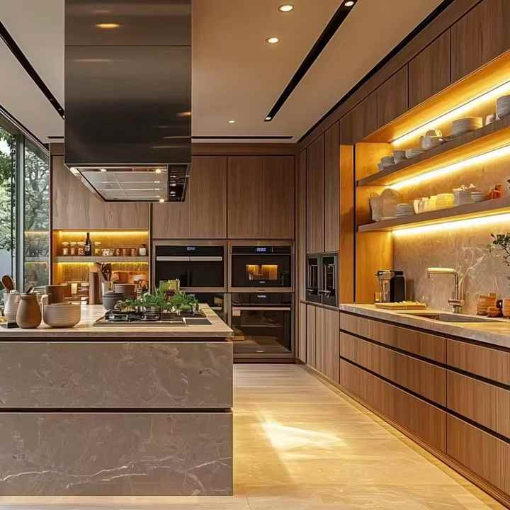Custom Solid Wood High Quality Modern Kitchen Unit Wall Mount Cabinet with Islands and Accessories