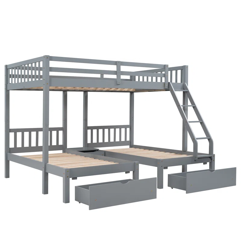 Product name:Twin Over Twin Over Full Wooden Bunk Bed with 3 Drawers