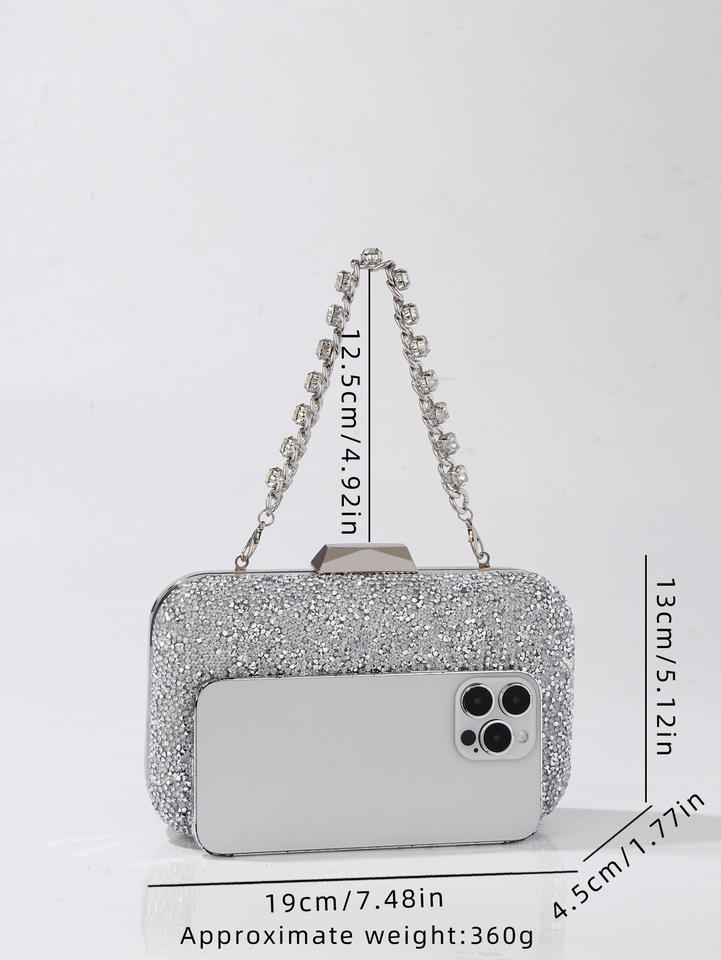 Custom Sparkling Chain Evening Clutch Bag for Women Rhinestone Sequin Party Purse Fashion Crossbody Bag for Prom Wedding Dinner
