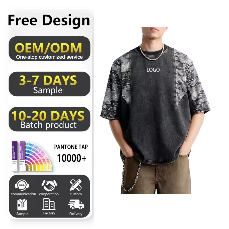 Custom Splicing Patch Work New Design 260 Gsm Cotton High Quality Outdoor Washed Oversized Heavyweight T-Shirt