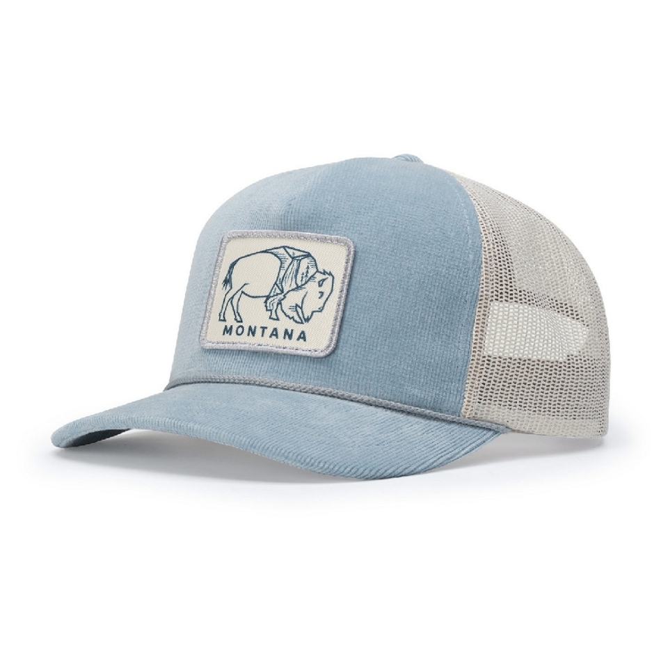 Custom Sports Vintage Hip Hop High Quality Neutro Corduroy Patch Sky Blue 2 Tone Mesh Trucker Hat Five Panel in Stock