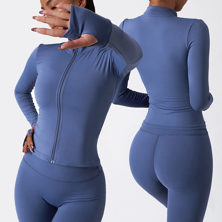 Custom Sportswear New Spandex High Waist Yoga Wear Womens Gym Jacket Seamless Long Sleeve Activewear Set