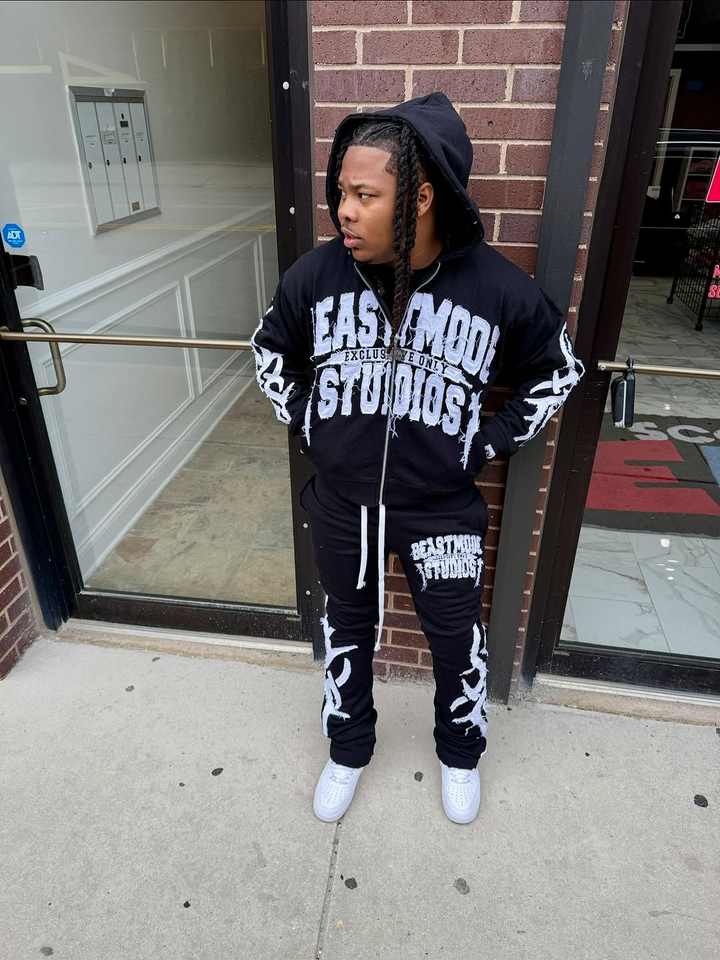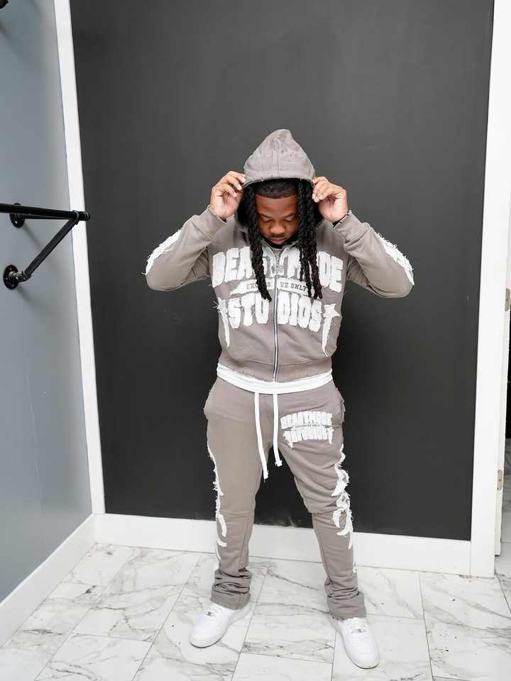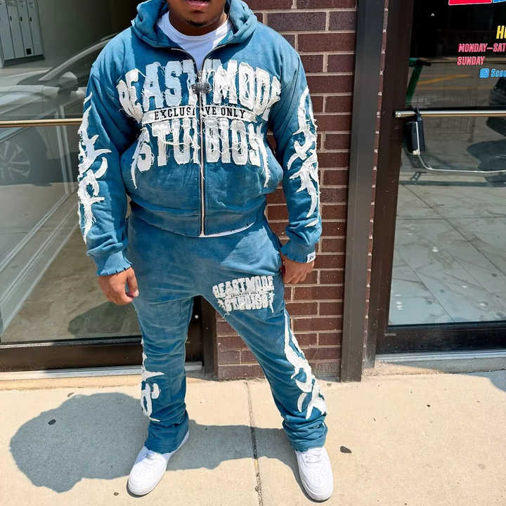 Custom Stacked tracksuit set hoodie and jogger flared pants design printed logo unisex 2 piece outfit streetwear sweat suits men