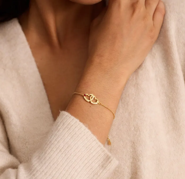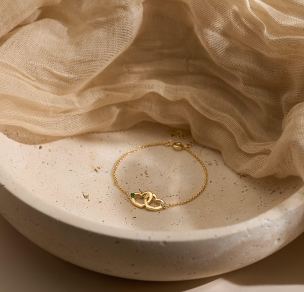 Custom Stainless Steel Interlocking Heart Name Bracelet with Birthstone Personalized Bestfriend Gift