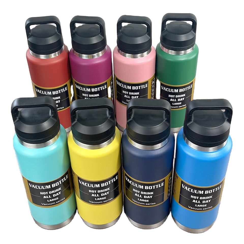Custom Stainless Steel Vacuum Insulated Thermos Flask 36oz/18oz/26oz Wide Mouth Chug Lid Handle Portable 12-24hr Thermal Outdoor