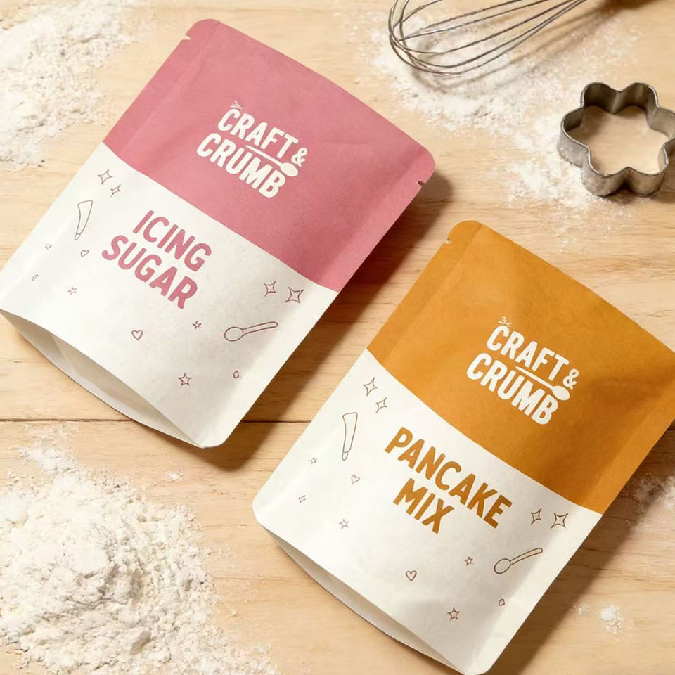 Custom Stand Up Pouches Smell Proof Bag Cookie Packaging Baking Flour Pouch With Tear Notch