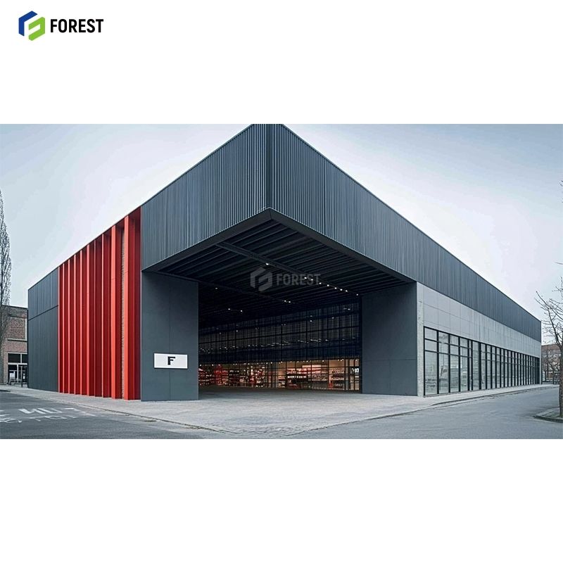 Custom Steel Showroom With Reinforced Columns and Floor to Ceiling Glass 3000sqm Galvanized Steel