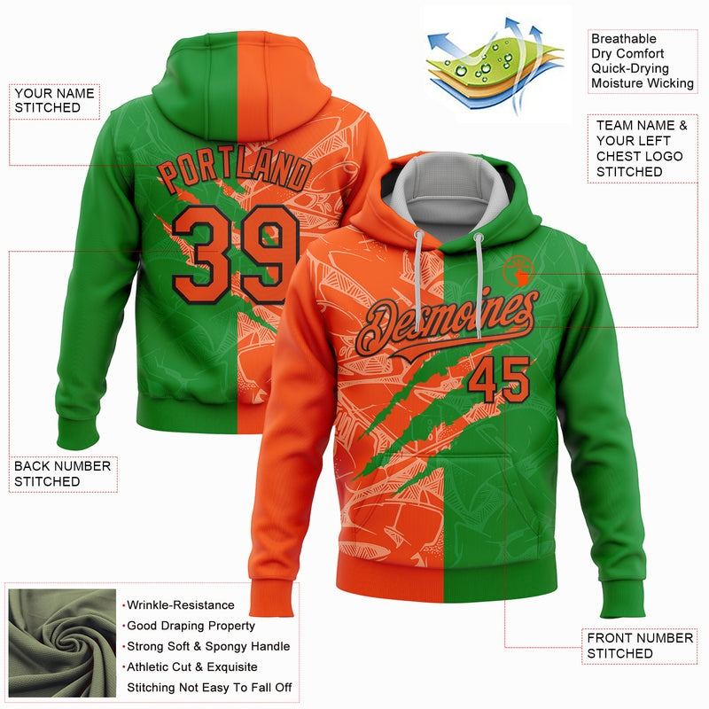 Custom Stitched Graffiti Pattern Orange Grass Green-Black 3D Scratch Sports Pullover Sweatshirt Hoodie