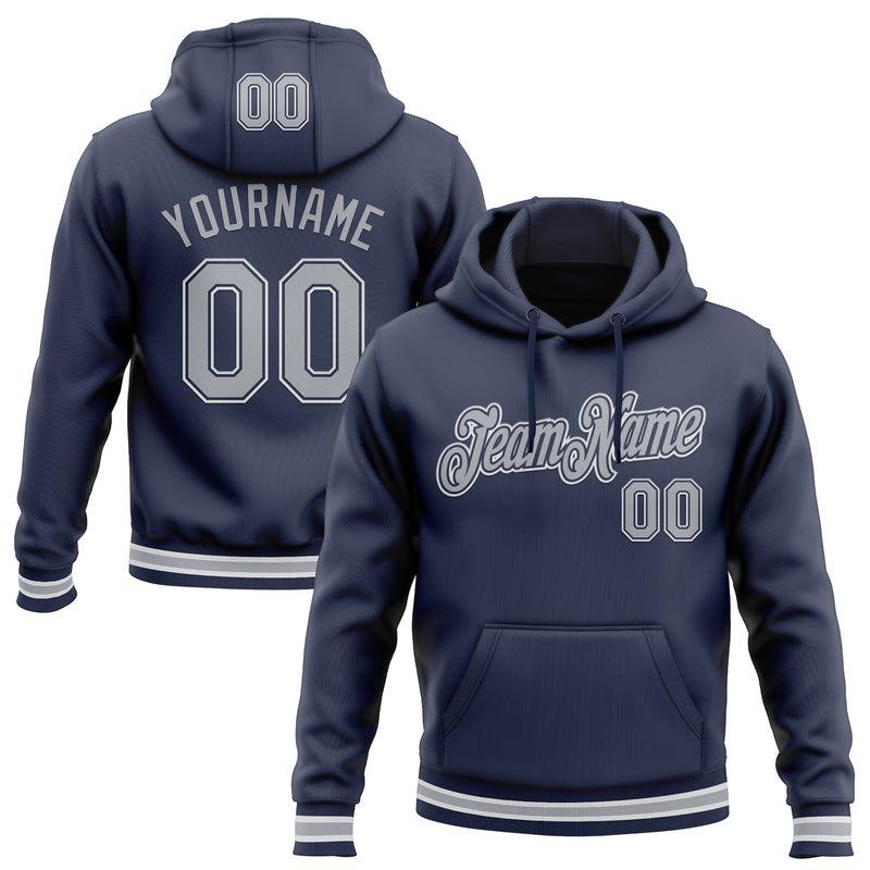 Custom Navy Gray-White Sports Pullover Sweatshirt Hoodie Winter Pullover with Embroidered Plain Dyed Beaded Techniques