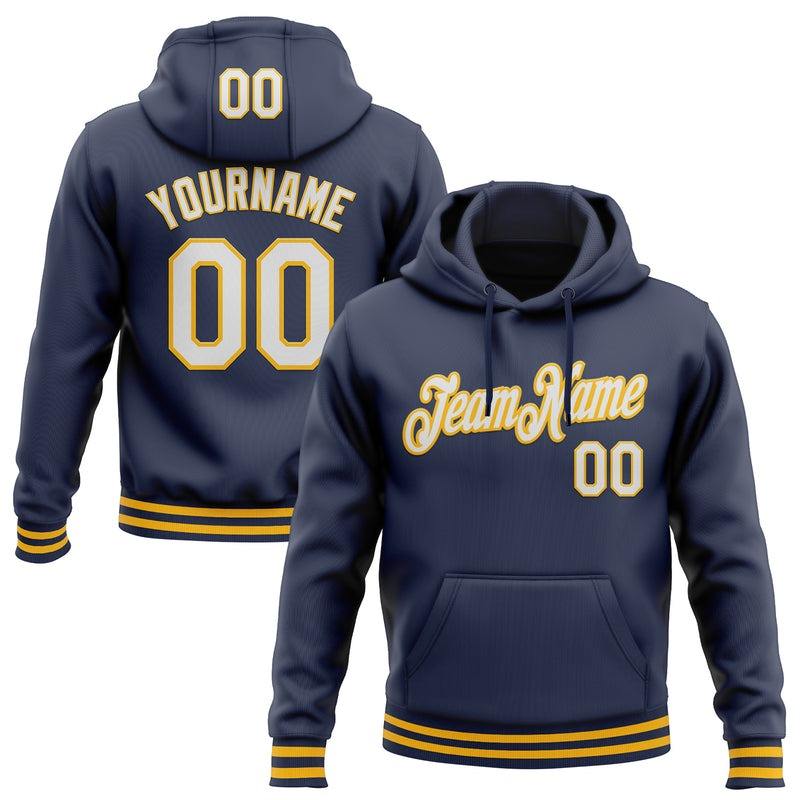 Custom Stitched Navy White-Gold Sports Pullover Sweatshirt Hoodie