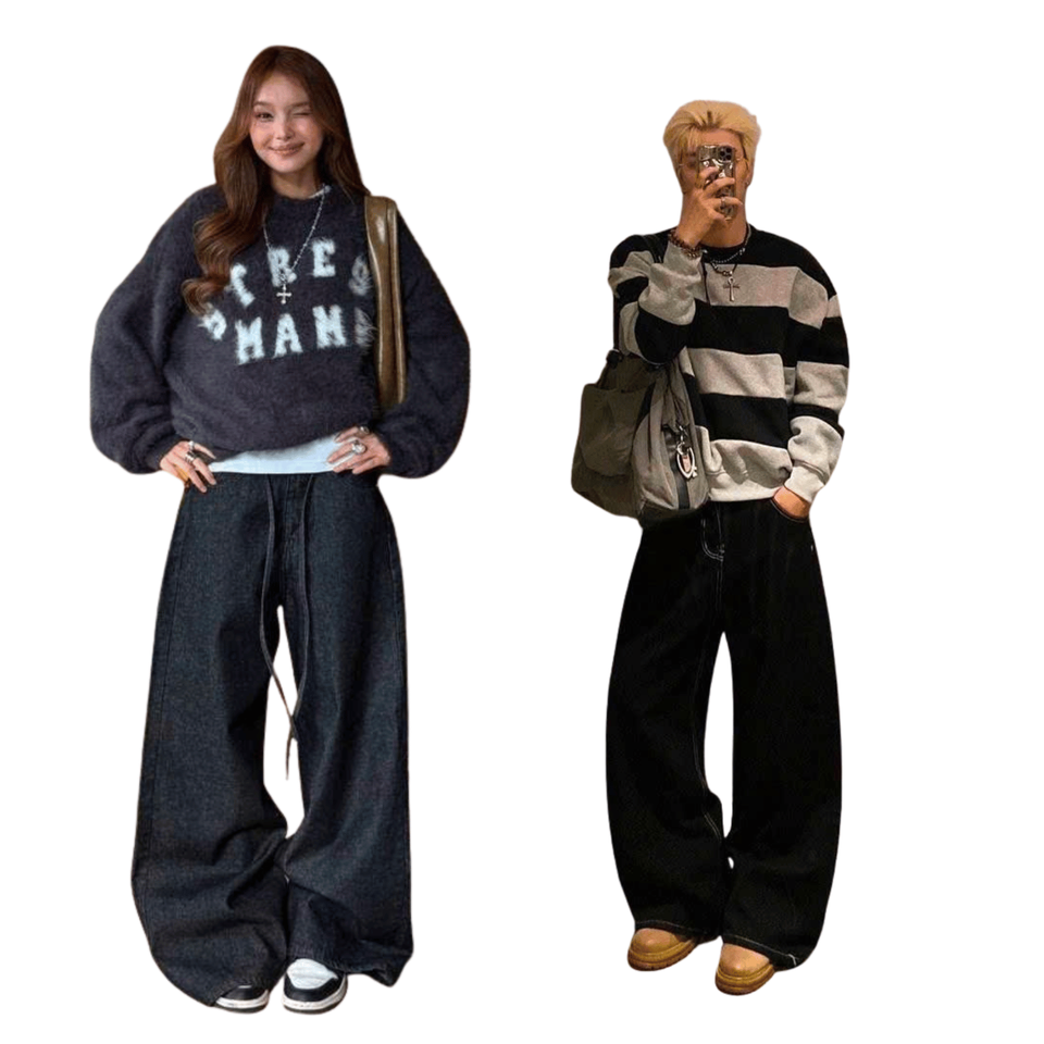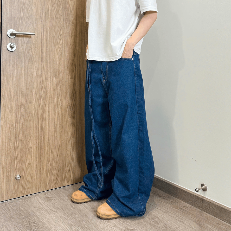 Custom Straight Baggy Men's Hip Hop Jeans Custom Logo Blank Streetwear Button Washed Distressed Organic Cotton Denim Fabric Rope