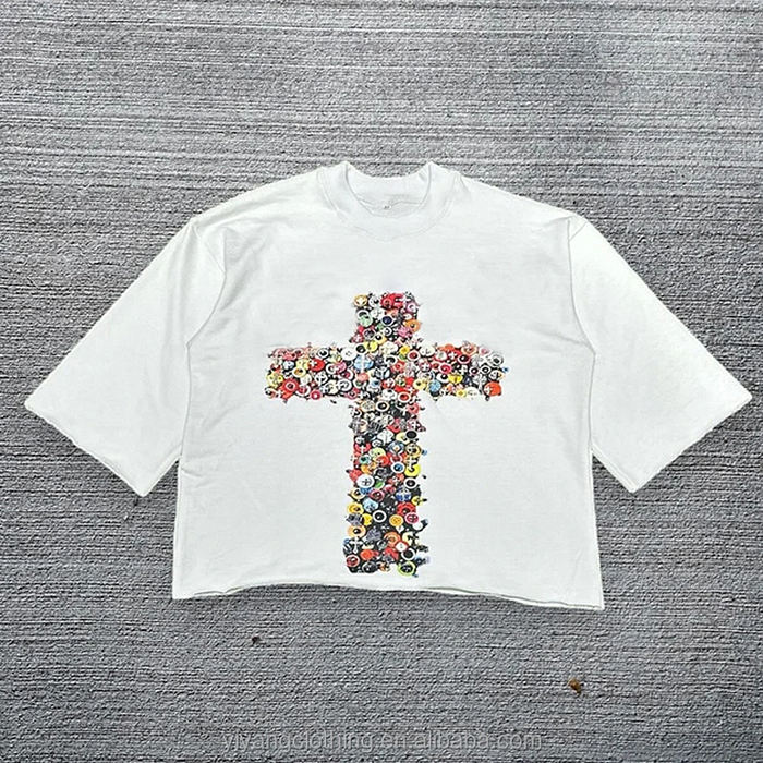 Custom Streetwear 100% Cotton Heavyweight Vintage Acid Wash Graphic Rhinestone Print T Shirt for Men Boxy Fit Cropped T Shirt