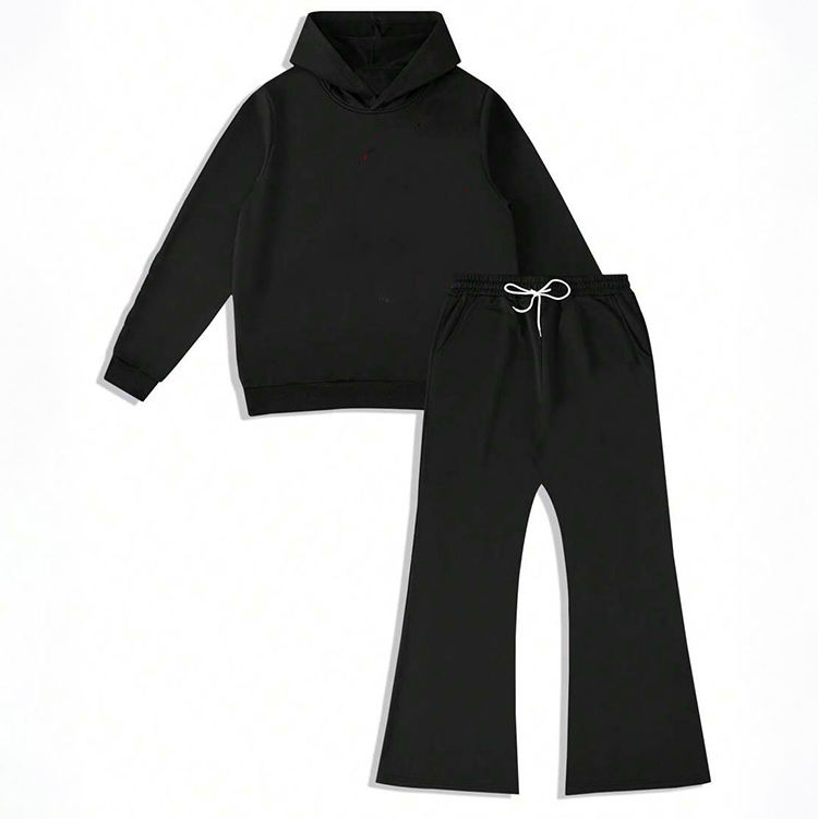 Custom Streetwear 400 GSM Zip Rhinestone Tracksuit Jogger Sweatpants Double Waist Flared Hooded Lightweight 100% Cotton Set Men
