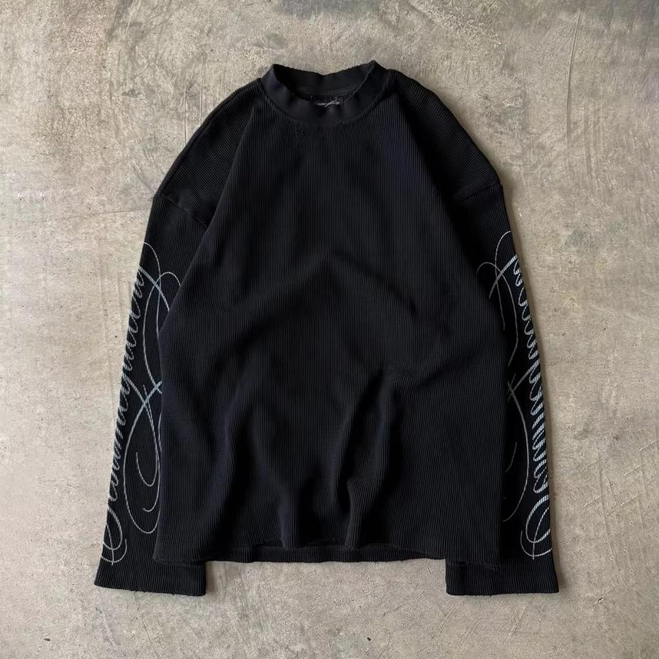 Custom Streetwear DTG Graphic 320 Gsm High Quality T Shirt Cotton Thermal Waffle Knit Long Sleeve