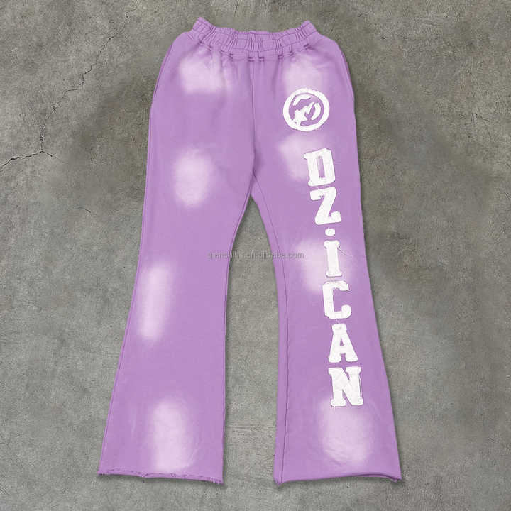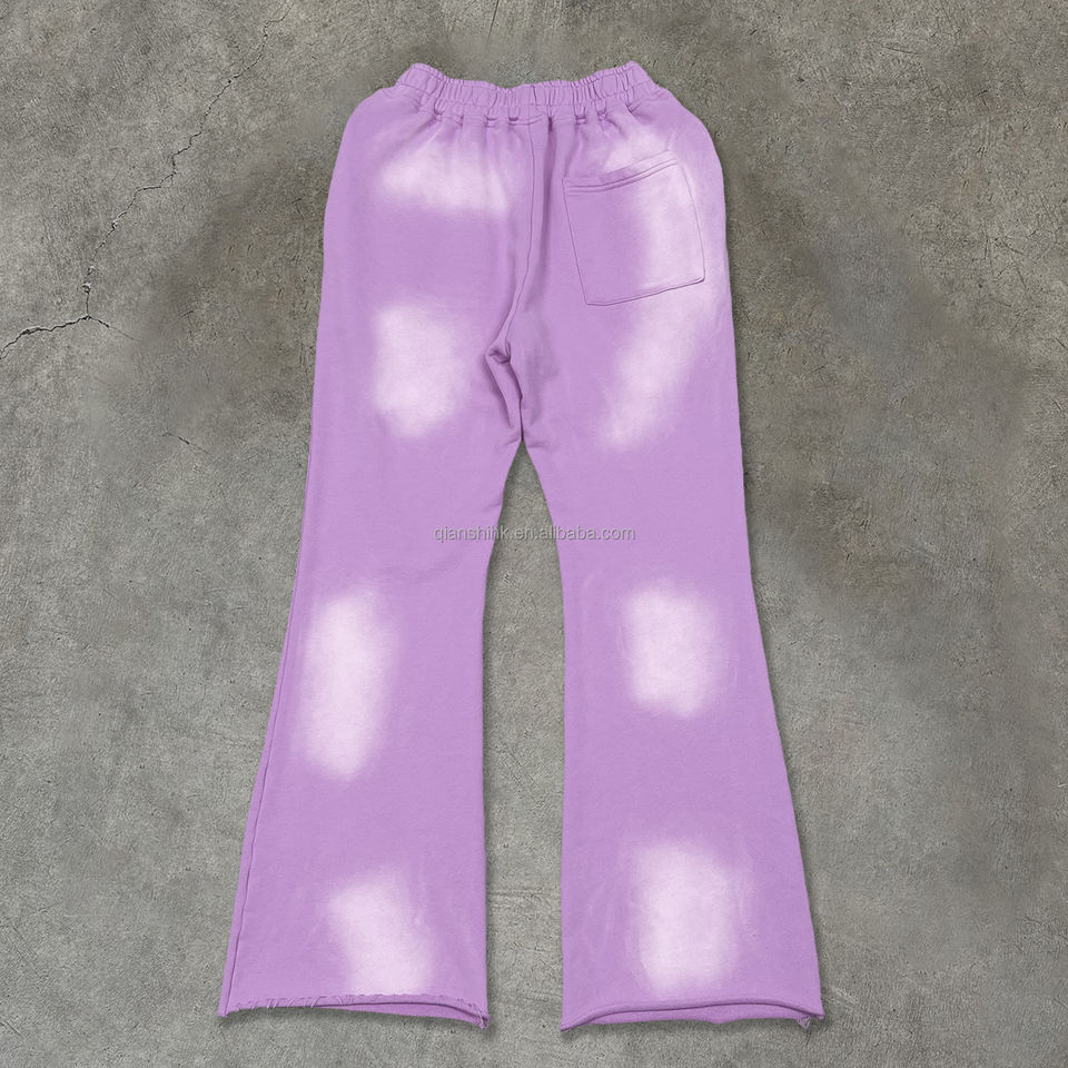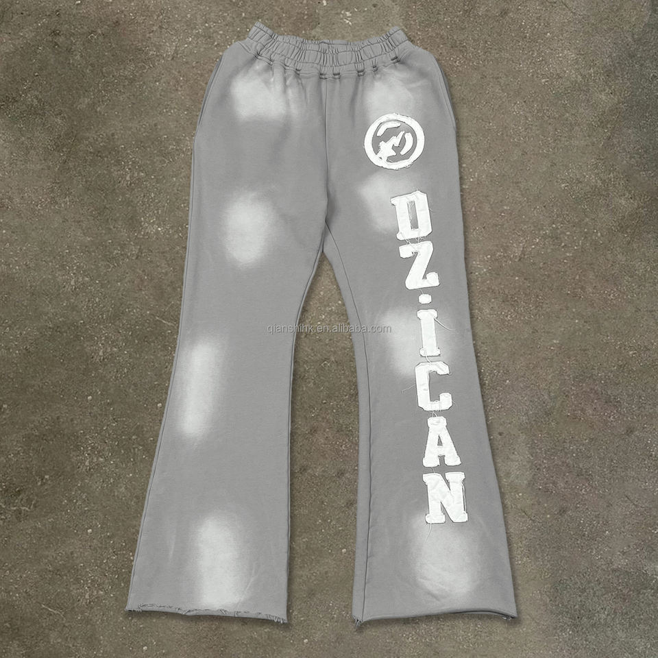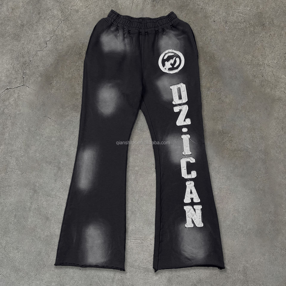 Custom Streetwear Embroidered logo Wide Leg Trousers Heavyweight Acid Wash Flare Sweatpants Designer Oversized Baggy Pants Men
