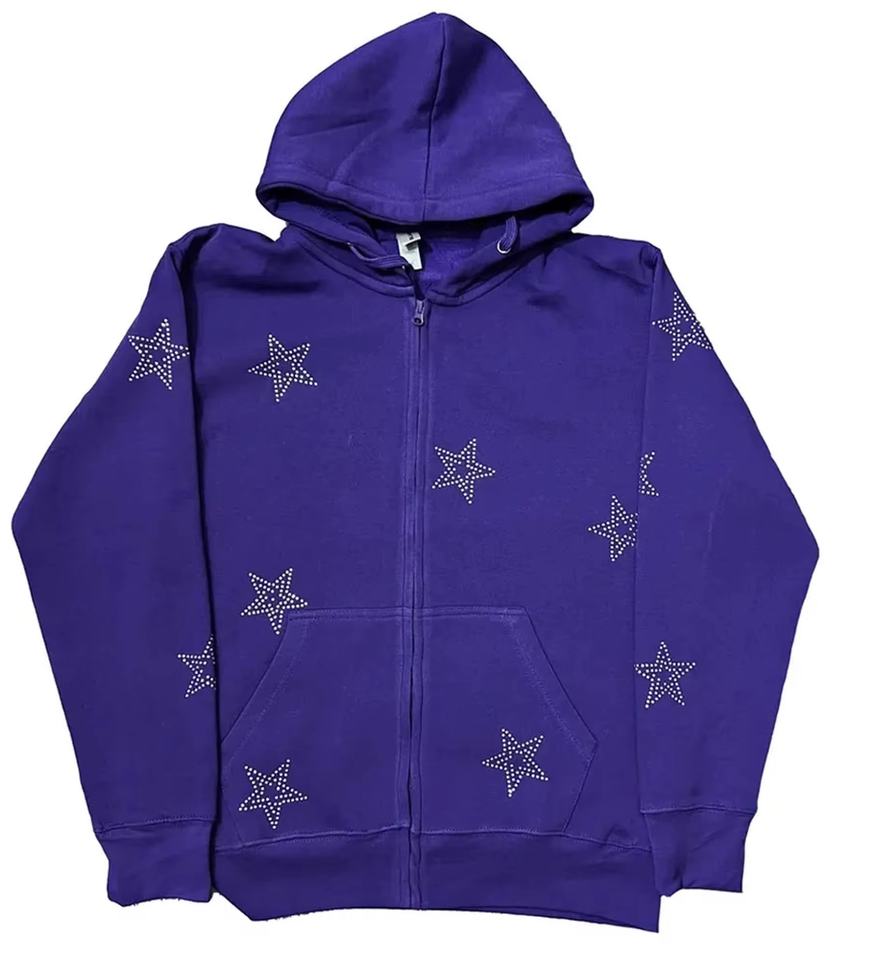 Custom Streetwear Hip Hop Acid Wash Hoodie Sun Faded Oversized Rhinestone Print Pullover Blank Hoodies For Men