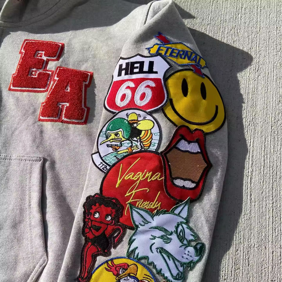 Logo position:Front, back, Left Sleeve, Right Sleeve