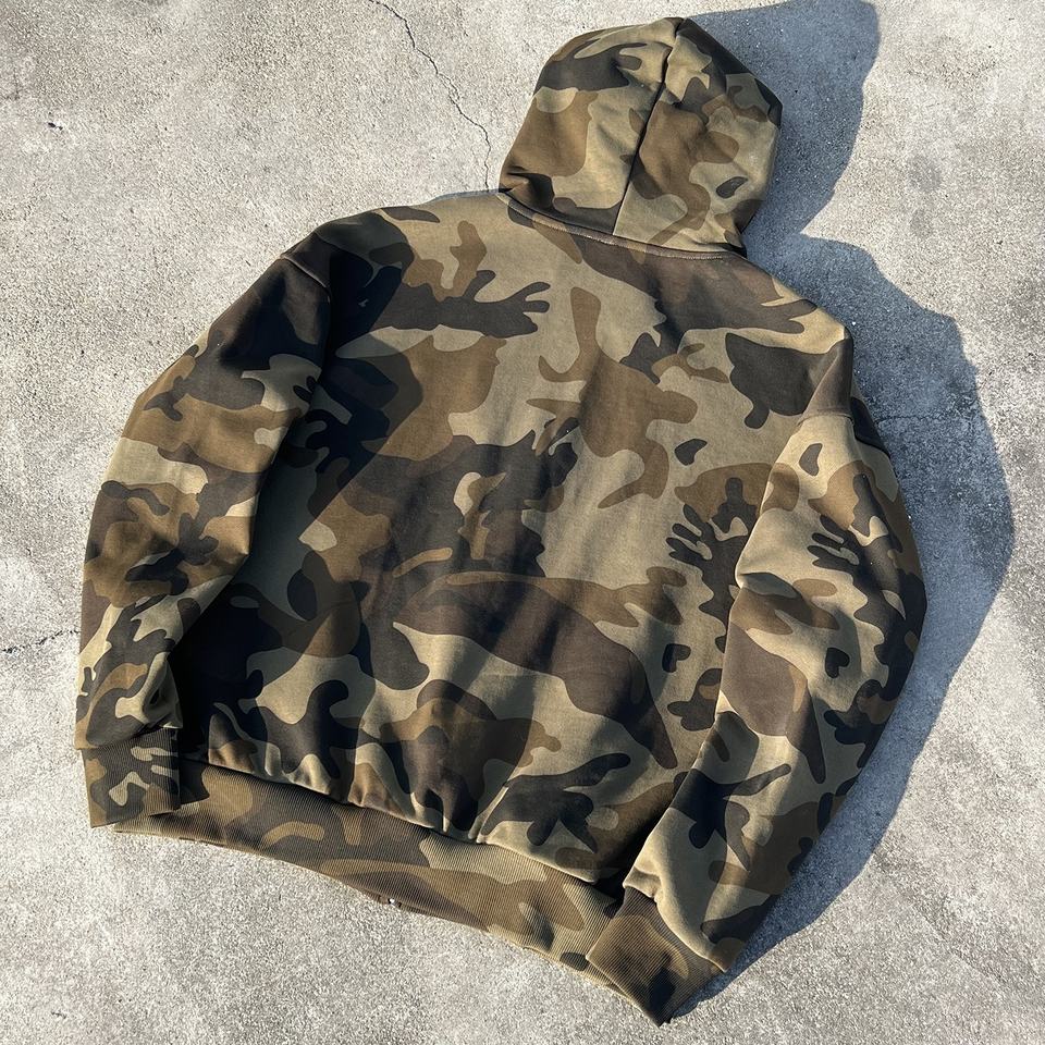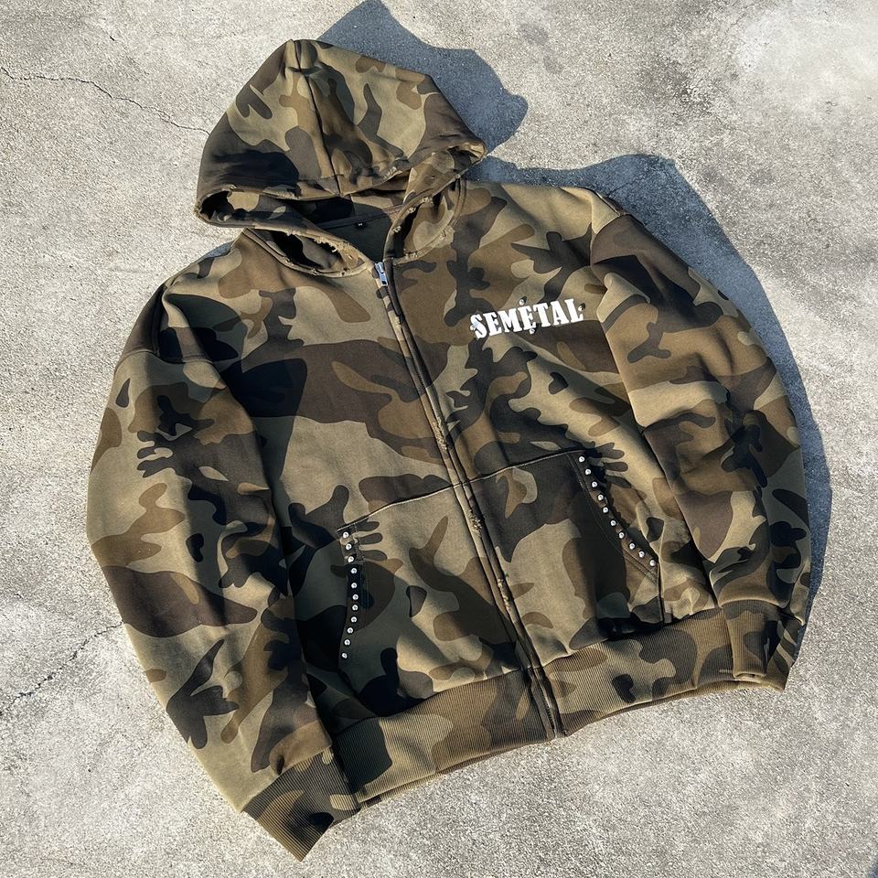 Custom Streetwear Rhinestone Hoodie Men French Terry Printed Designer Zipper Hoodie Oversized Heavyweight Camo Zip Up Hoodie