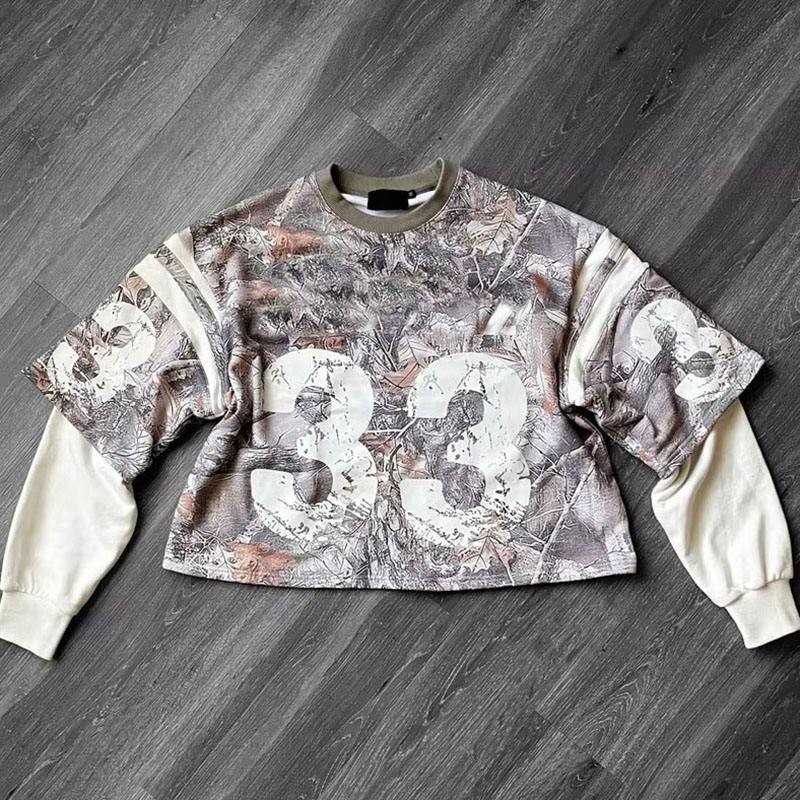 Custom Streetwear Screen Print Long Sleeve Cropped Tshirts Sun Faded Vintage Oversize Double Layered T Shirt for Men