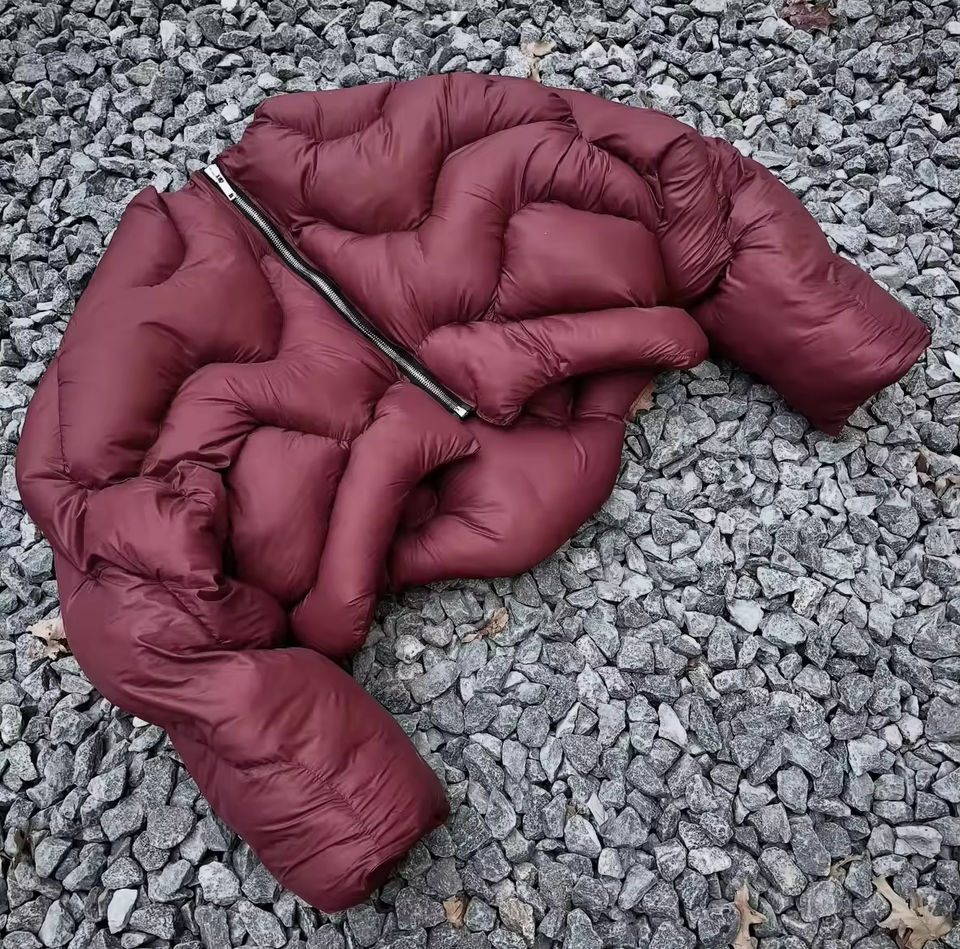 Custom Streetwear Short Puffer Jacket for Men | Warm Winter Bubble Coat with Zipper | Cropped Knitted Fabric Down Jacket OEM