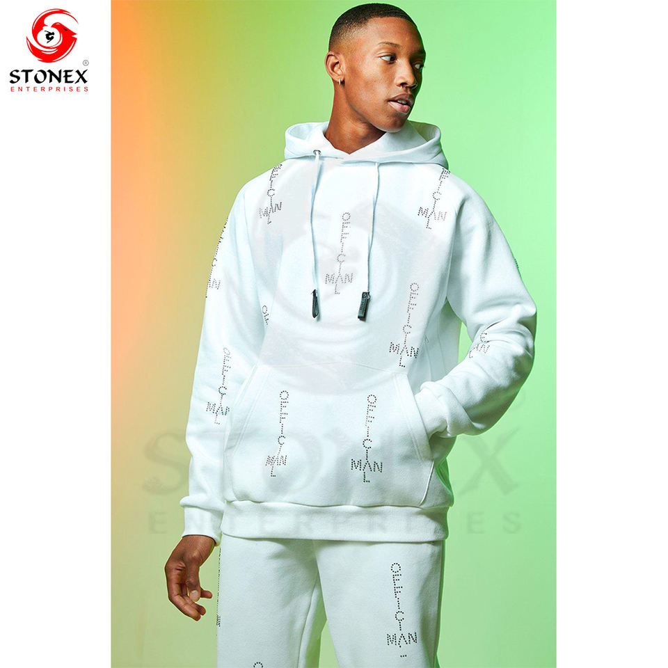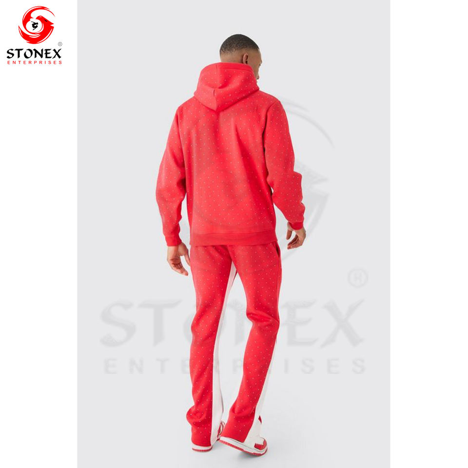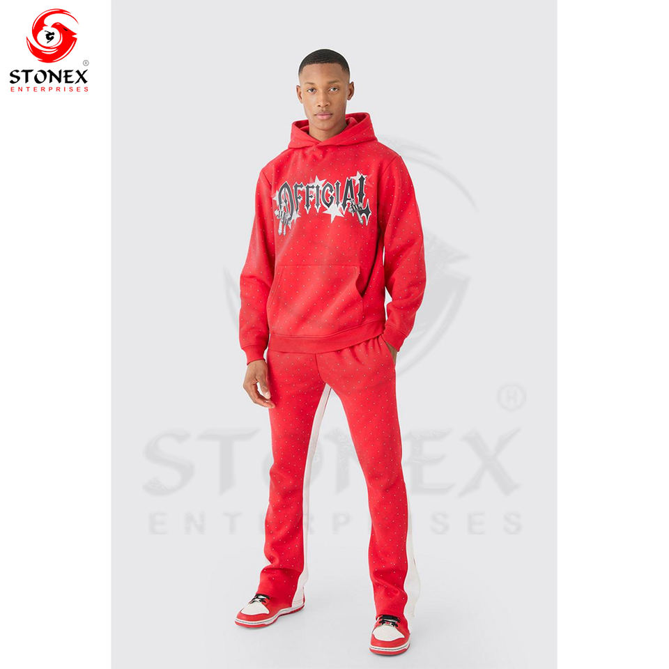 Custom Streetwear Sweatsuit Cotton Hoodie and Sweatpants Set Man Sweatsuit Acid Washed Rhinestone Tracksuit for Men