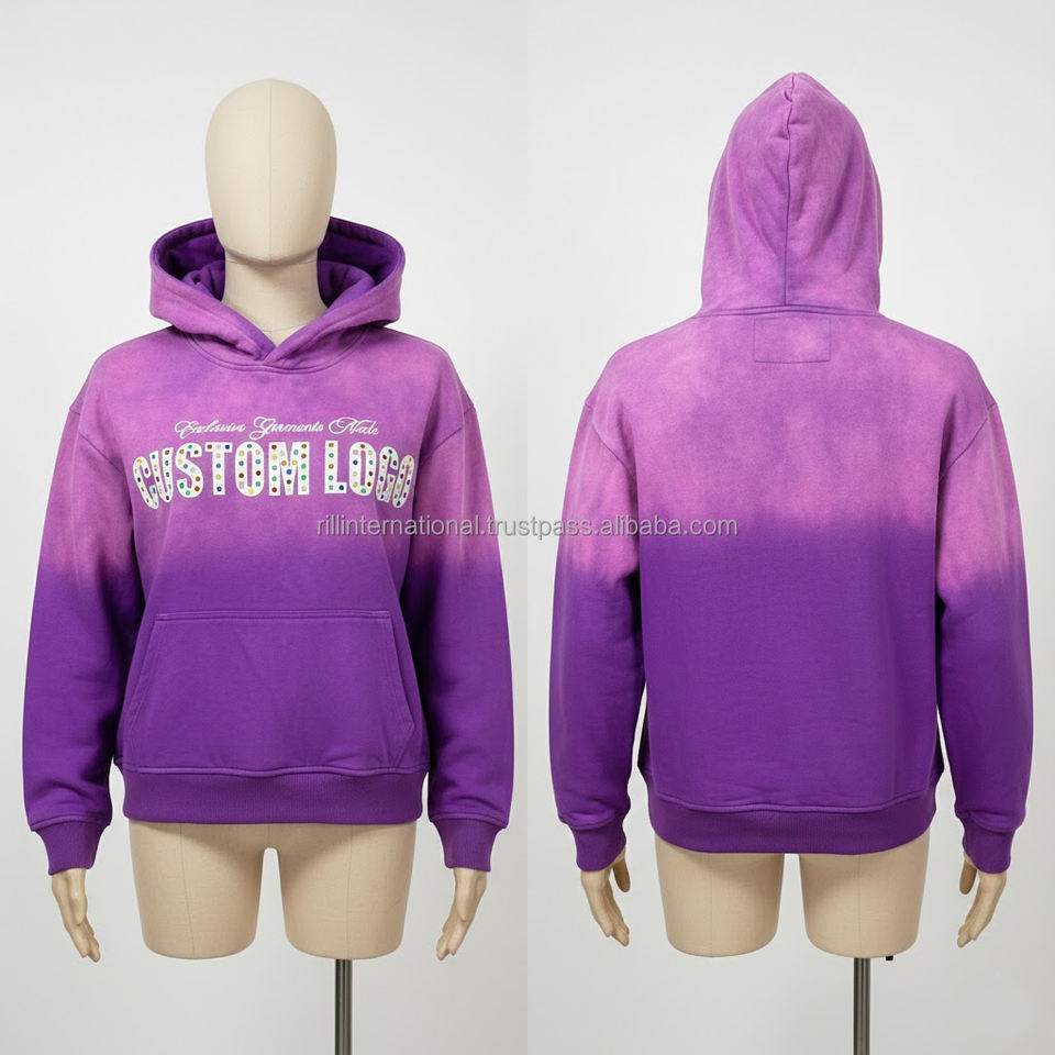 Custom Streetwear Unisex Sun Faded Acid Wash Hoodie Rhinestone Screen Print Men OEM Custom Fashion Hoodie