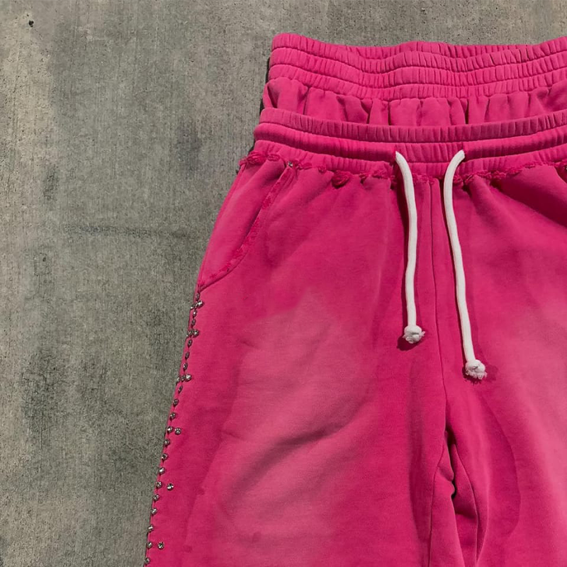 Custom Streetwear Vintage Distressed Ripped Boxy Cropped Embroidery Patch Sun Faded Zip up rhinestone Hoodies and shorts set