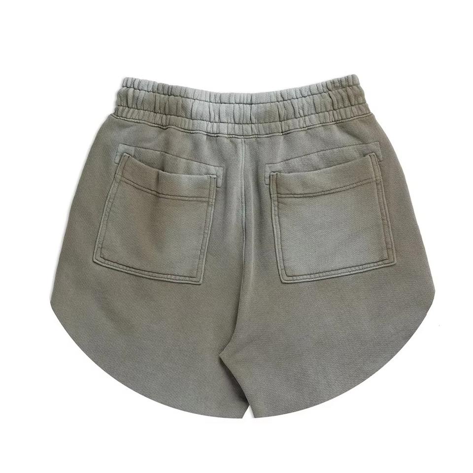 Custom Men's Vintage Sunfade Cotton Shorts Distressed Applique Patch Embroidery Streetwear Drawstring Acid Wash Style Pattern