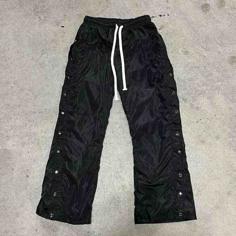 Custom Streetwear Wide Baggy Pants Trousers Drawstring Waist Men Snap Button Side Oversized Baggy Nylon flared Sweatpants