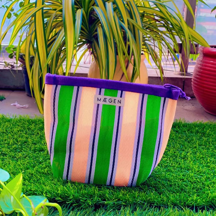 Custom Striped Travel Beach Tote Bag Eco-Friendly Recycled Nylon Reusable Zipper Logo Label Cosmetic Toiletry Shopping Bag