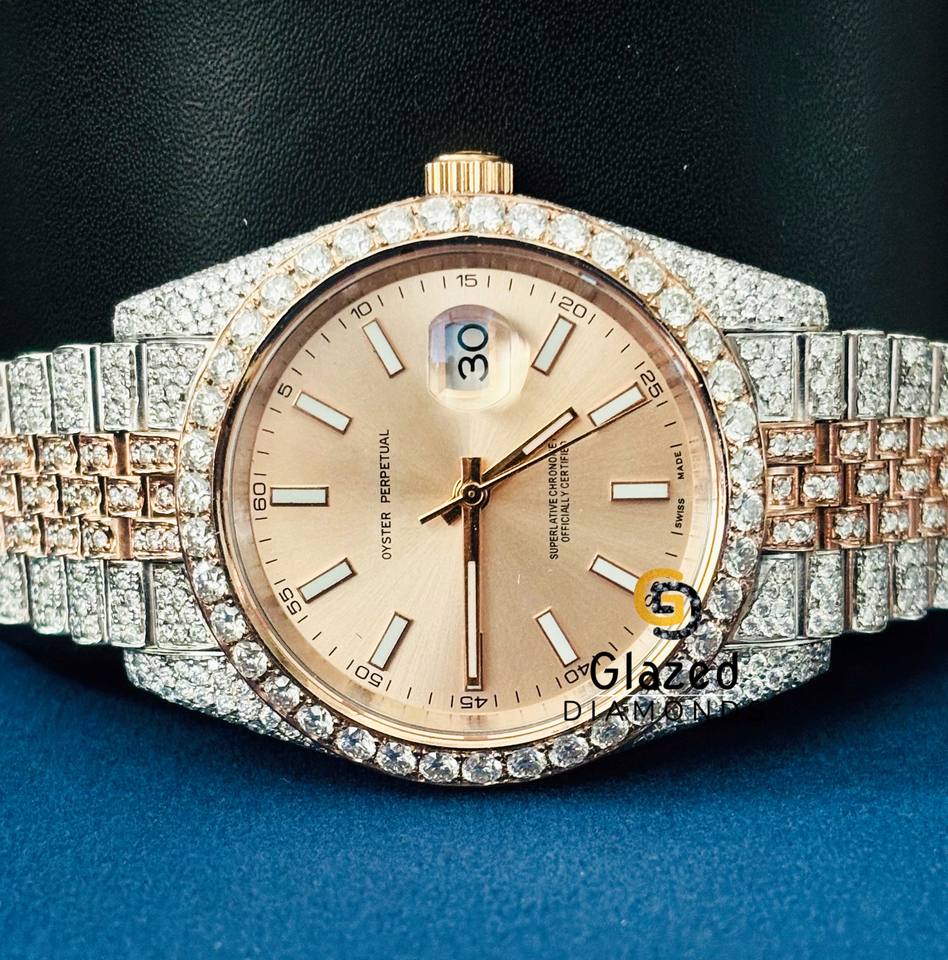 Custom Stunning Full Iced Out Round Lab Grown Diamond Classic Date Dial and Latest Features Diamond Watch For Men Gift