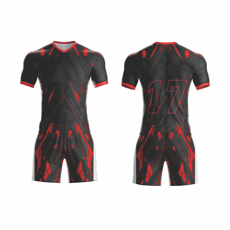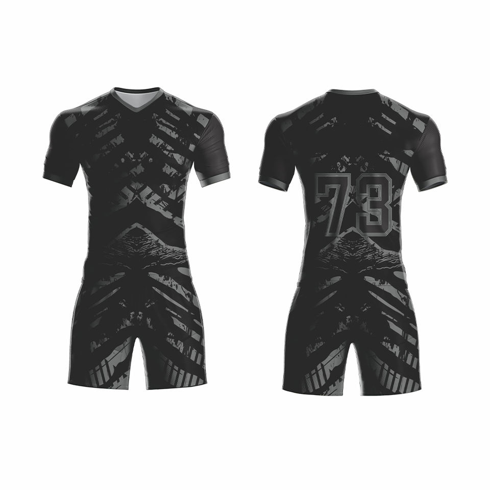 Custom Sublimated Black Yellow Tribal Rugby Compression Soccer Wear-Short Sleeve Jersey and Shorts for Training and Matches