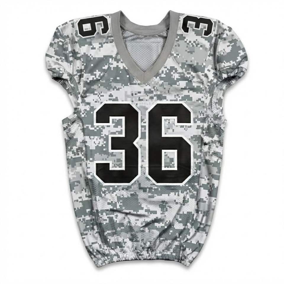 Custom Sublimated Grey Camouflage American Football Jerseys Team Digital Design Gridiron Training Sportswear Uniforms