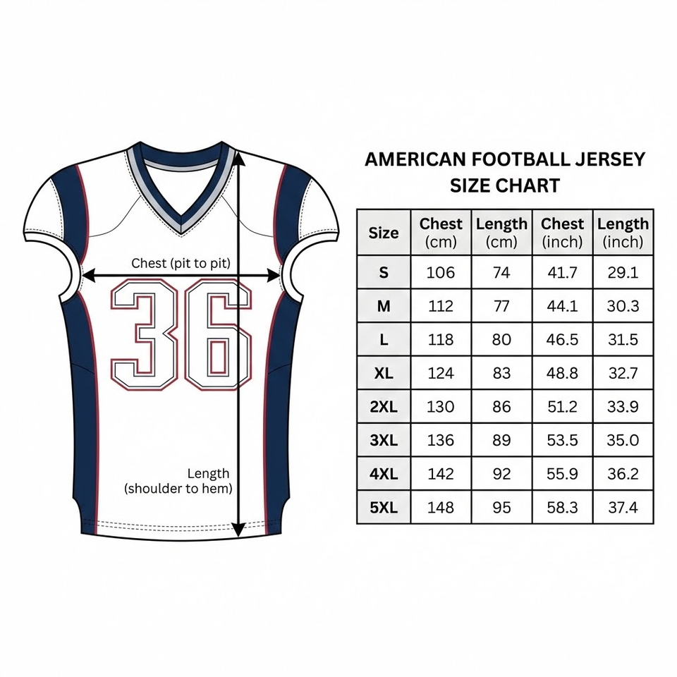 Front, back, Left Sleeve, Right Sleeve, back neck, Customized