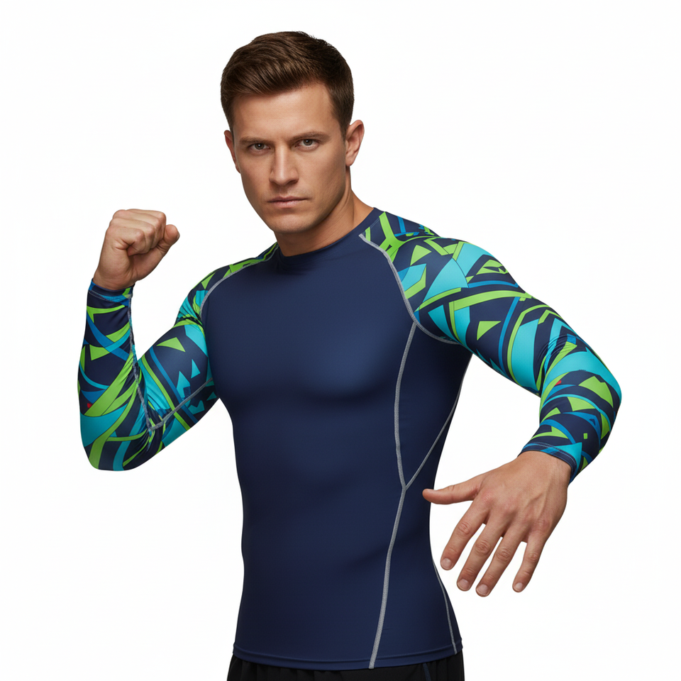 Custom Sublimated Jiu Jitsu Rashguard Long Sleeve MMA BJJ Compression Shirt with Surf Logo Wholesale MMA Fighting Shirt for Men