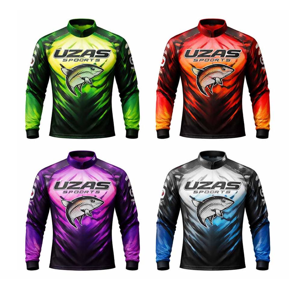 Custom Sublimated Printed Long Sleeve Fishing Jerseys UPF50 Protection 100% Cotton Men's Anti-Bacterial Zipper Fishing Wear