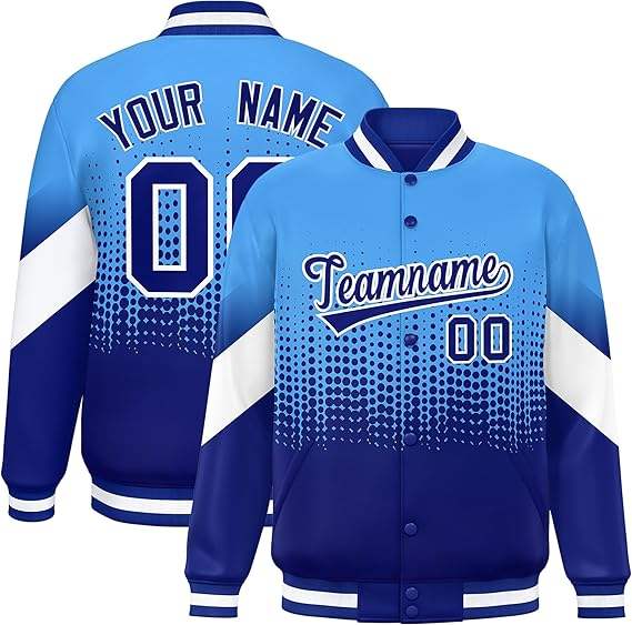 Custom Sublimation Gradient Varsity Jacket Men Team Name Number Printed Full Snap Bomber Jacket Personalized College Baseball
