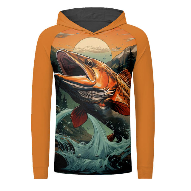 Custom Sublimation Men's Long Sleeve Fishing Hoodie UV Protected 100% Cotton Low MOQ with 3D Pattern