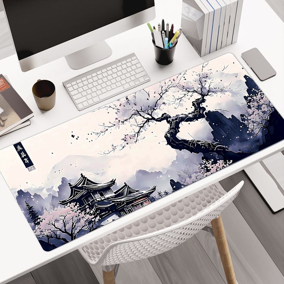 Custom Sublimation Print Japanese Style Large Gaming Mouse Pad Anime Flower Blossom Desk Mat Rubber Base XL Gaming Keyboard Mat