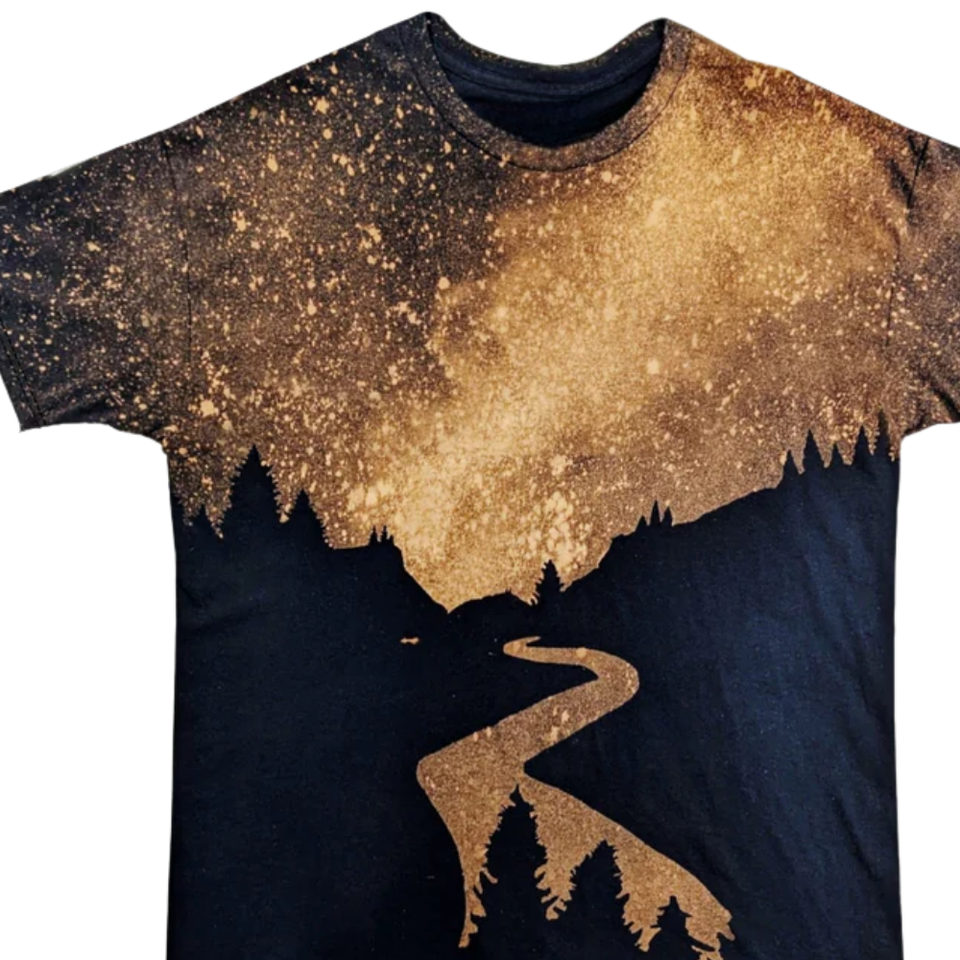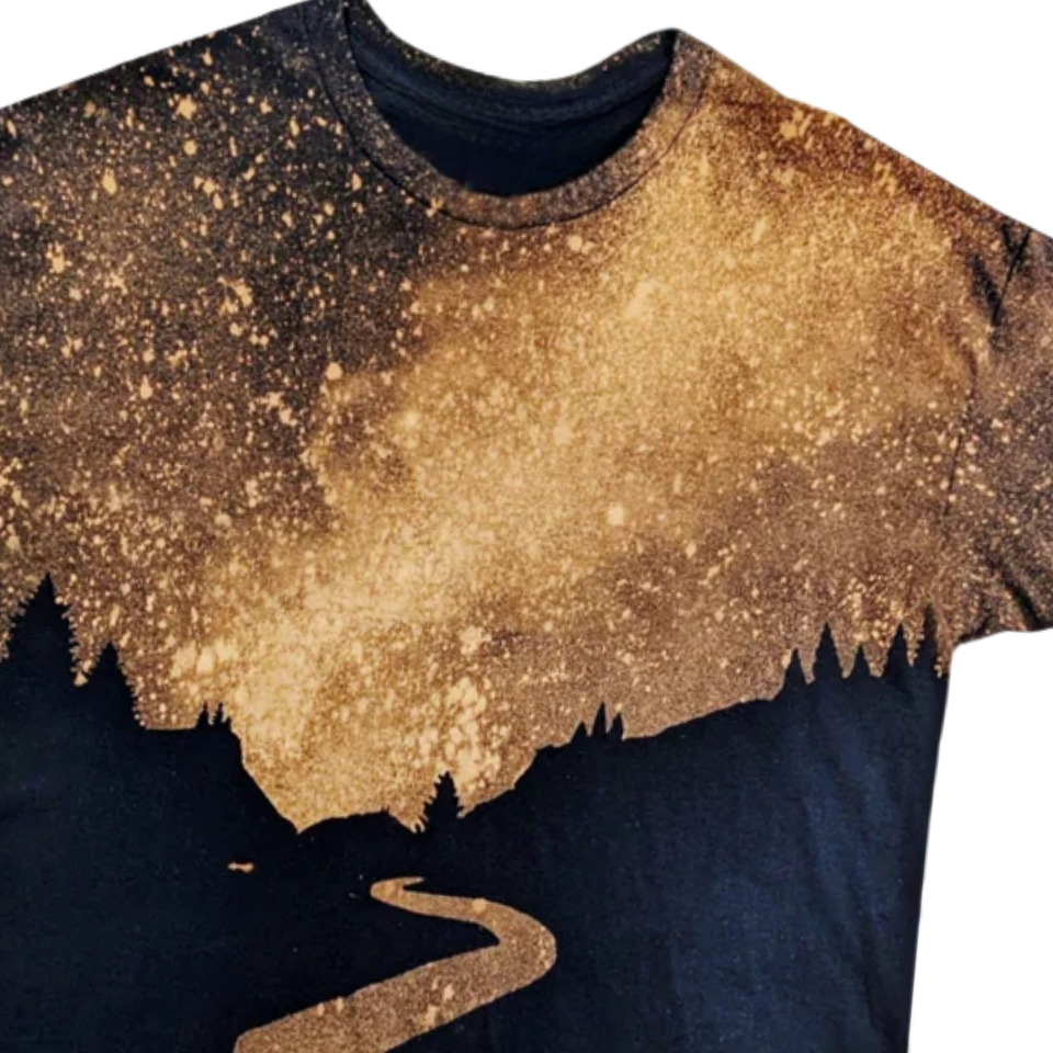 Custom Sublimation T Shirt Mountain Forest Night Sky All Over Print Graphic Tee Unisex Polyester OEM ODM Wholesale Streetwear