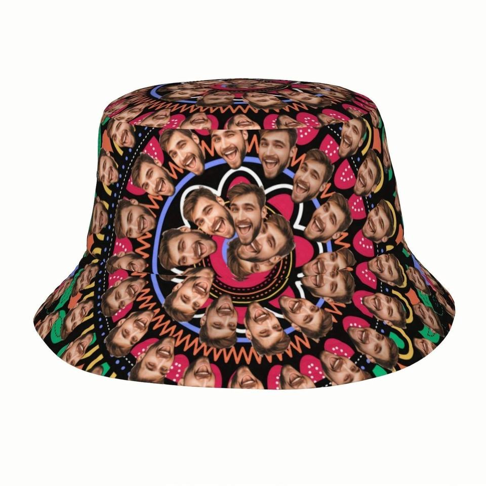 Custom Summer Beach Travel Bucket Hat for Men Women Hand Drawn Cartoon Design Personalized Photo Hat for Outdoor Adventures