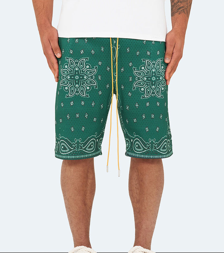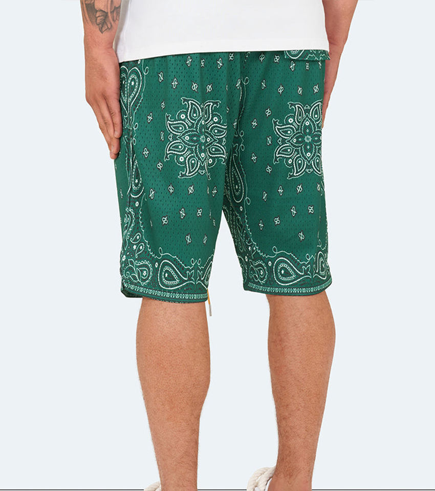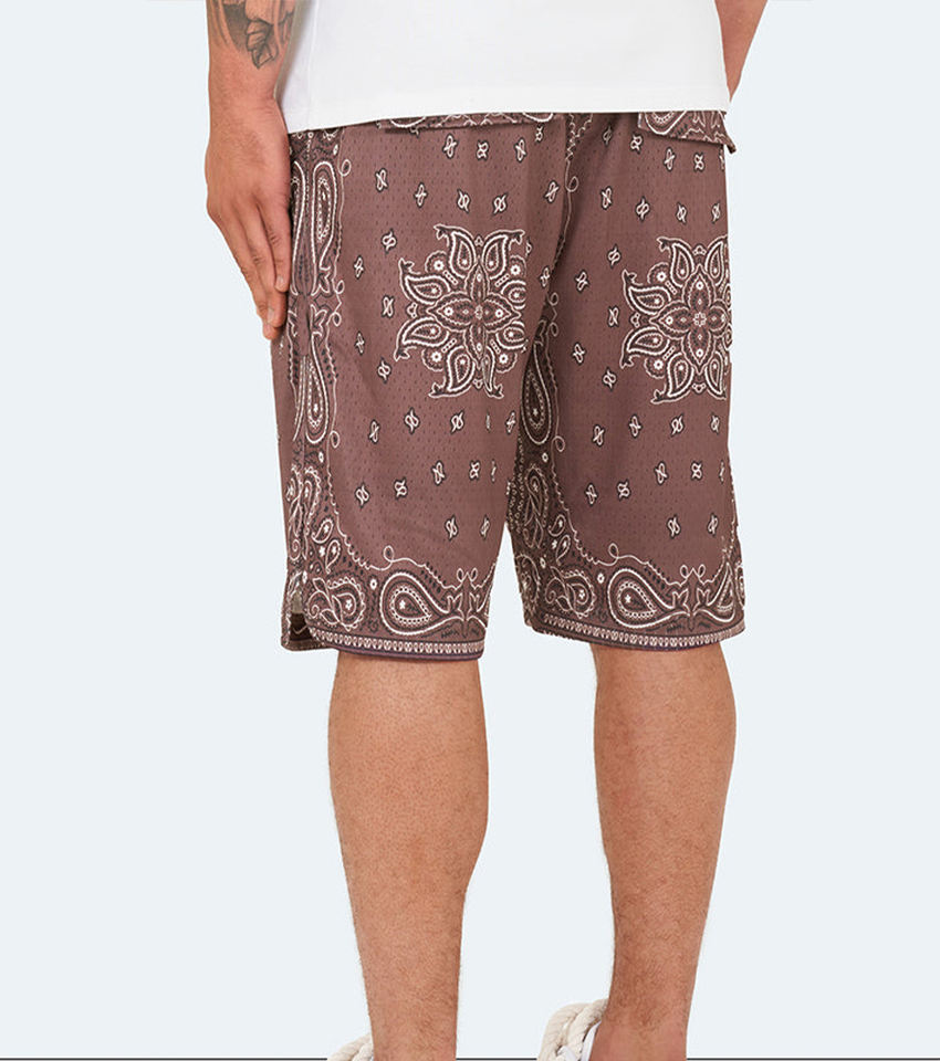 Custom Summer Breathable High Quality Mens Shorts Paisley Print Polyester Custom Logo Mesh Shorts for Men
