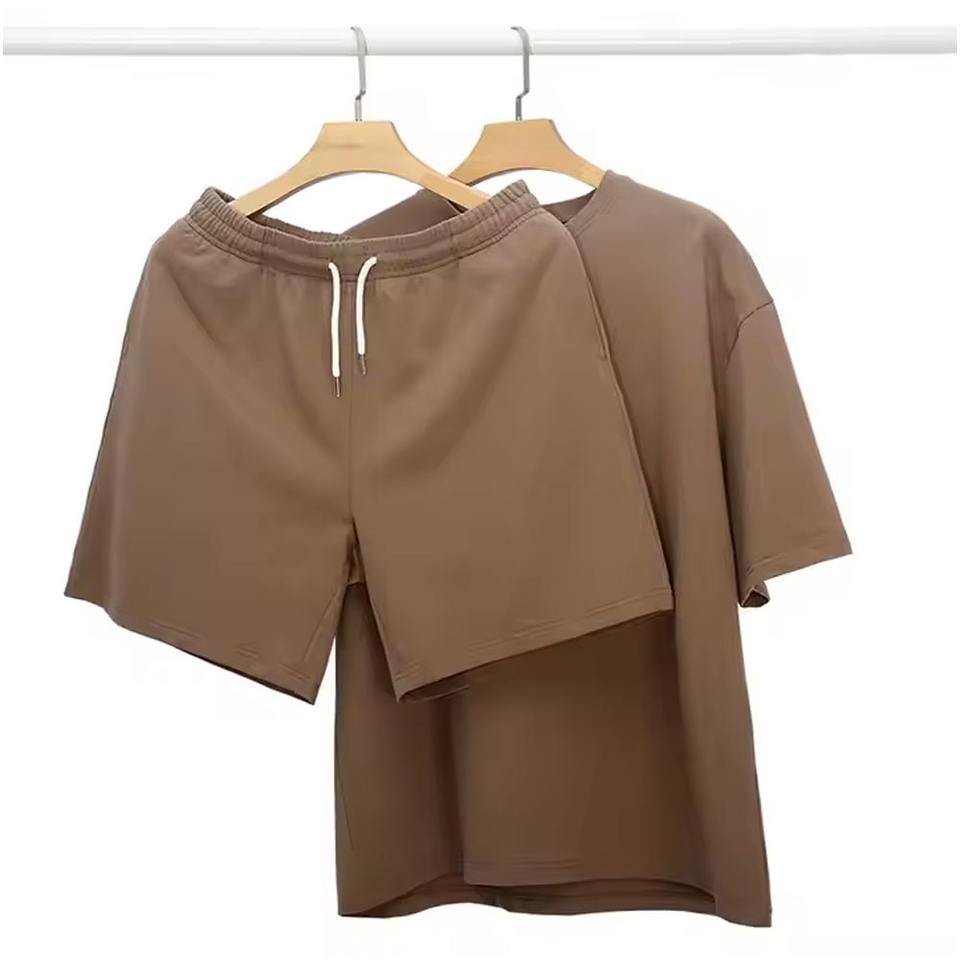 Custom Summer Casual Two-Piece Outfit Solid Pattern T-Shirt and Shorts Set