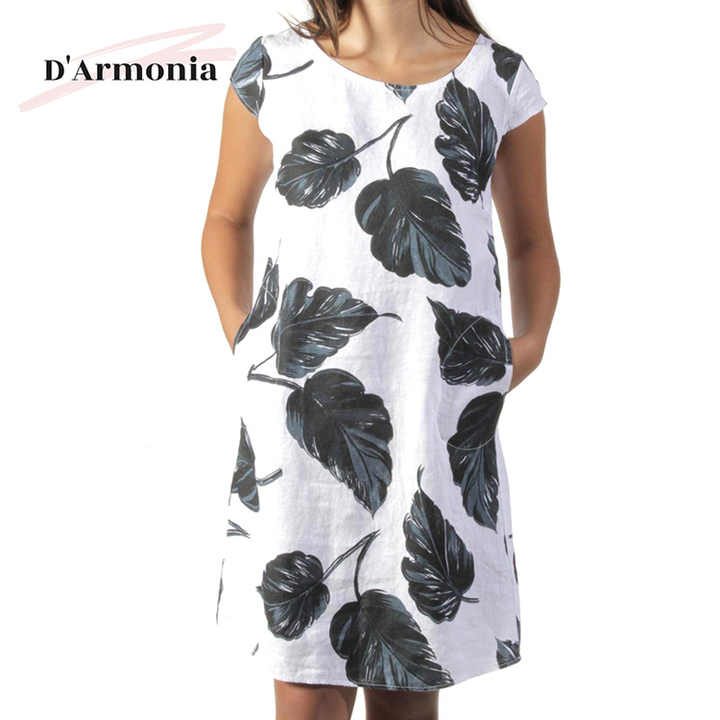 Product Name:Women Cotton Linen Dresses Short Sleeve One Piece Simple Dress