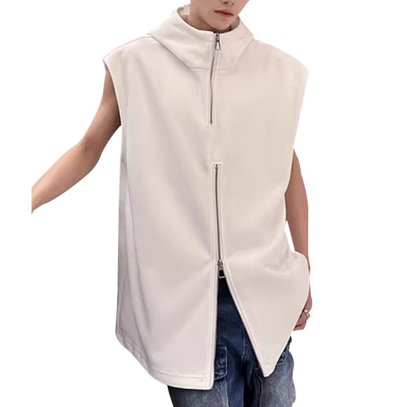 Product name:Men White Sleeveless Hoodie with Metal Zipper