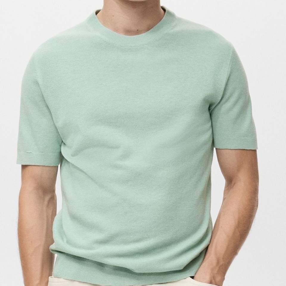 Custom Summer Men's White Knitted T-shirt Simple Loose 100% Cotton Round Neck Short-sleeved Knitted Top for Men OEM ODM