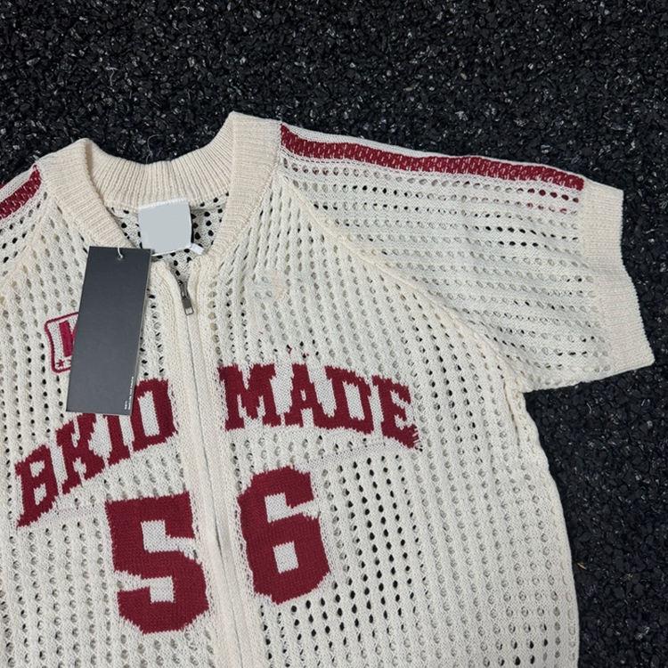 Custom Summer T-Shirt Men 250gsm 100% Cotton Knitted Short Sleeve Zip-up Mesh Loose Fit Casual Letter Pattern Breathable Design