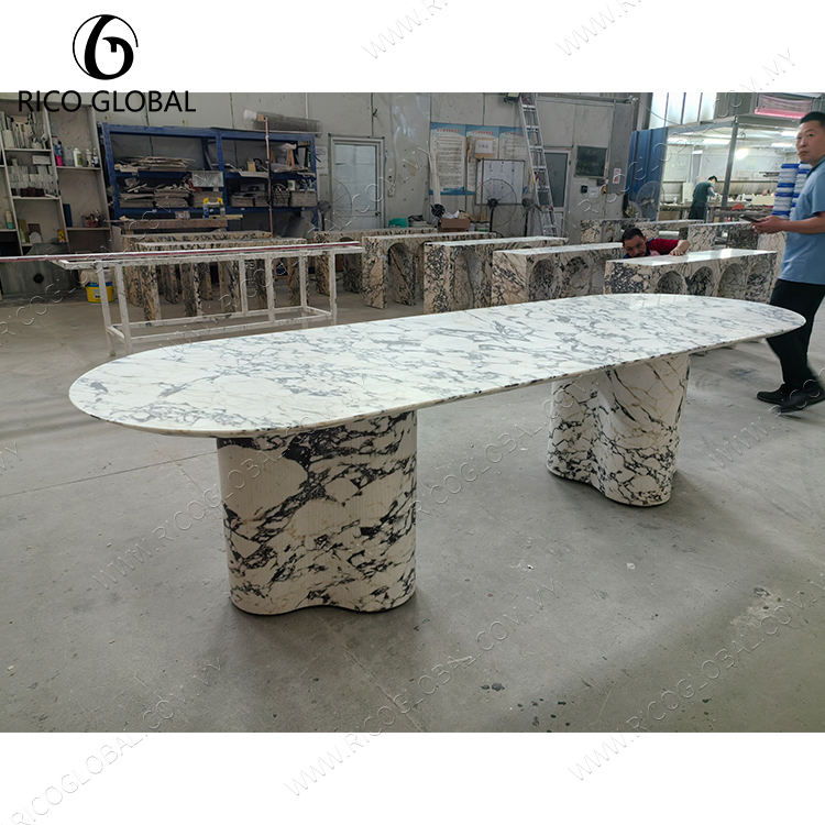 Custom Super Thin Calacatta Viola Marble Veneer Composite Aluminum Honeycomb Laminated Dining Table